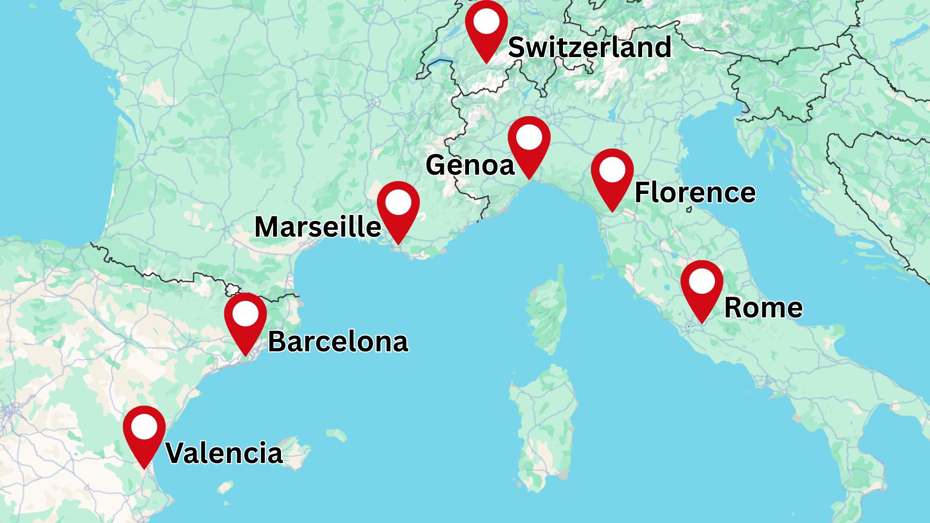 Explore Iconic Cities: Barcelona, Marseille, Genoa, Florence, Rome, and Valencia.
